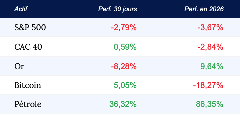 Ce qu'il faut retenir : La situation est presque binaire. Tant que le baril reste au-dessus de 110 $, un rebond durable des marchĂ©s semble plutĂŽt compromis. En revanche, si le dĂ©troit dâOrmuz rouvre, le prix du pĂ©trole pourrait chuter et les marchĂ©s rebondiraient.