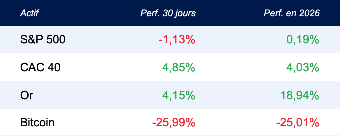 Dans un contexte toujours incertain, l’or et l’argent reprennent leur dynamique haussière, tandis que le Bitcoin reste proche des 66 000$.